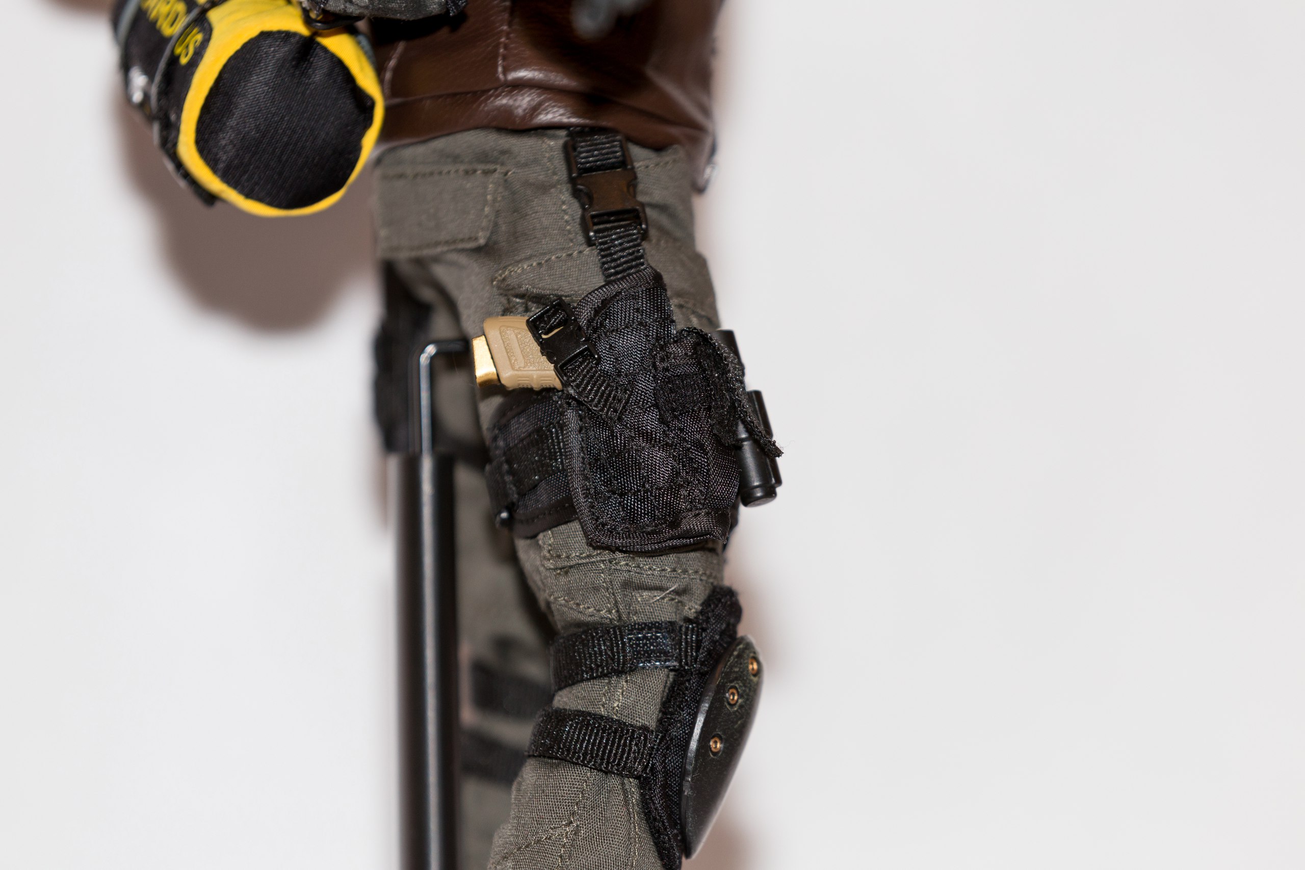 ![]() ![]() Как видно, вся одежда уже была одета на персонажа. При этом, есть возможность застегнуть молнию на кожанке и скрыть бронежилет, однако делать это стоит очень аккуратно, молния идет туговато, из-за бронежилета, поэтому лучше придерживать и тащить ползунок молнии пинцетом, а не за шнурок ![]() Конечно же, куртка, бронежилет и кофта снимаются, поэтому можно комбинировать все как душе угодно. Карманы на штанах рабочие, набиты поролоном для объема. ![]() В капюшоне кофты имеется леска, поэтому можно делать форму капюшона какую угодно, для создания более реалистичного вида в той или иной ситуации. ![]() Остальные молнии на кожанке декоративные. Ботинки: тут мы сталкиваемся со вторым отличием от Damов. ![]() А именно, они пластиковые, литые, без шнурков. Пожалуй это единственная вещь в фигурке, за которую хочется кинуть камень в VTS. Ну ведь делаете же у военных кожаные ботинки с текстильными шнурками, что же тут то по жадничали? ![]()